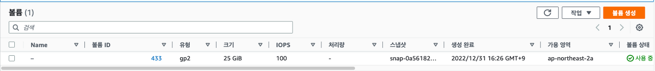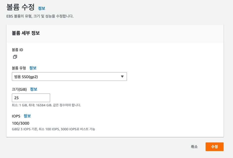 처음 ec2 인스턴스를 생성할 때 default로 8GB가 되어있으므로 볼륨을 늘려줘야 한다.