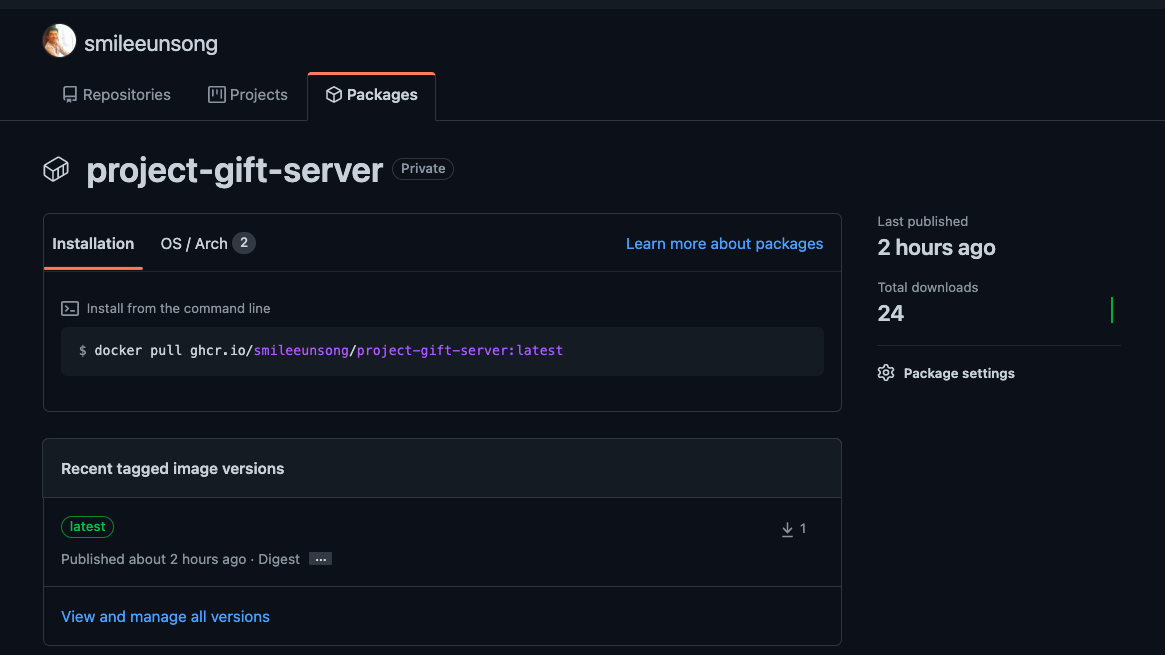 올라간 이미지는 Github 내 Packages에서 확인할 수 있다.