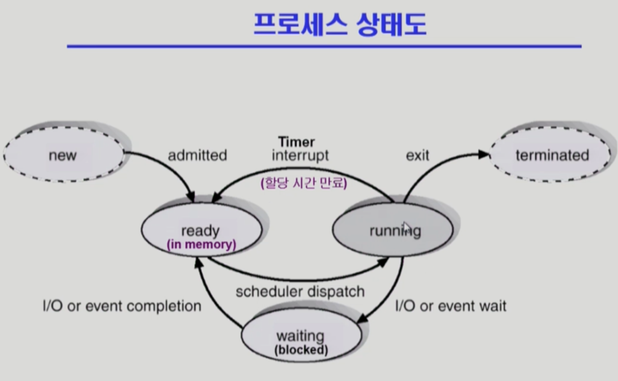 - Running : CPU를 잡고 instruction을 수행 중인 상태