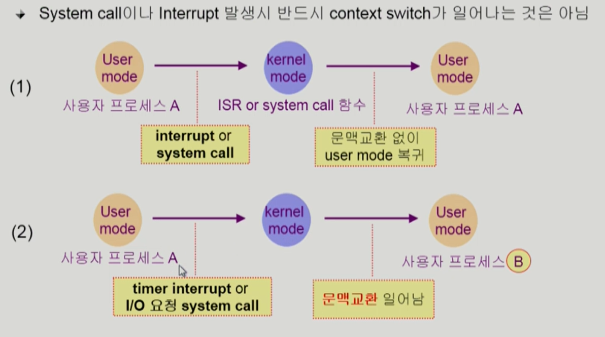- CPU가 다른 프로세스에게 넘어갈 때 운영체제는 다음을 수행