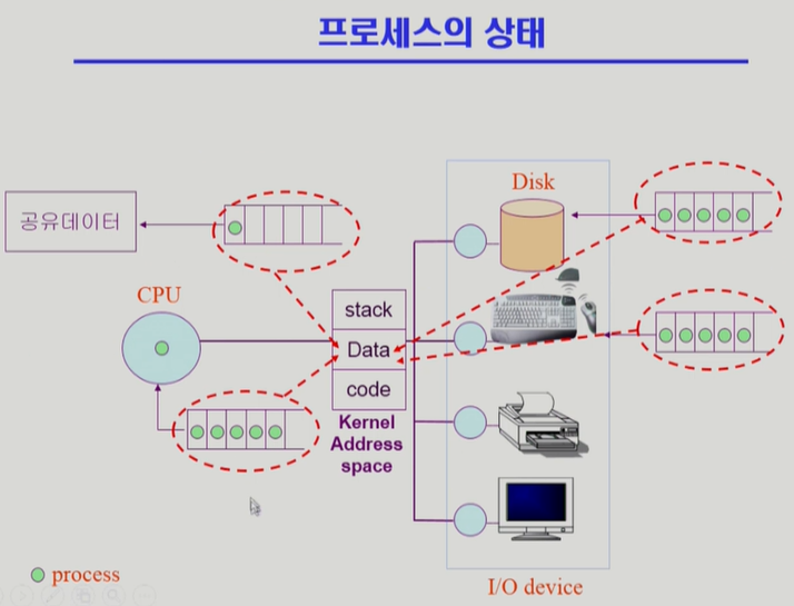 - Blocked (wait, sleep) : CPU를 주어도 당장 instruction을 수행할 수 없는 상태